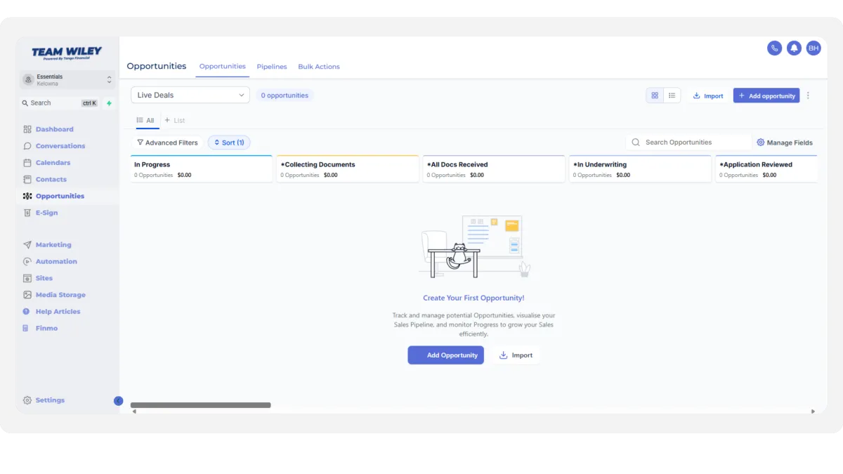 Team Wiley integrates seamlessly with Finmo to automatically sync data. For other platforms, such as Velocity, Scarlett, or Filogix, users can manually update pipeline stages. Additionally, Team Wiley supports connections to other tools using RESThooks, Zapier, or APIs, allowing for advanced integrations tailored to your needs.